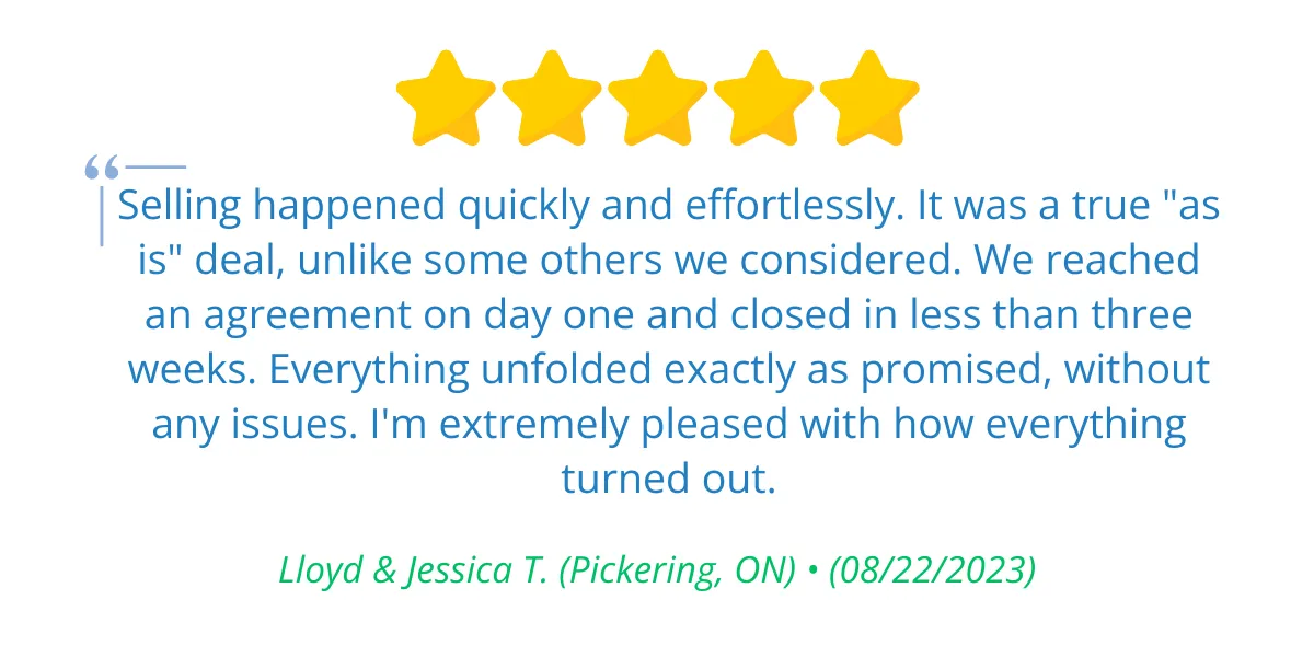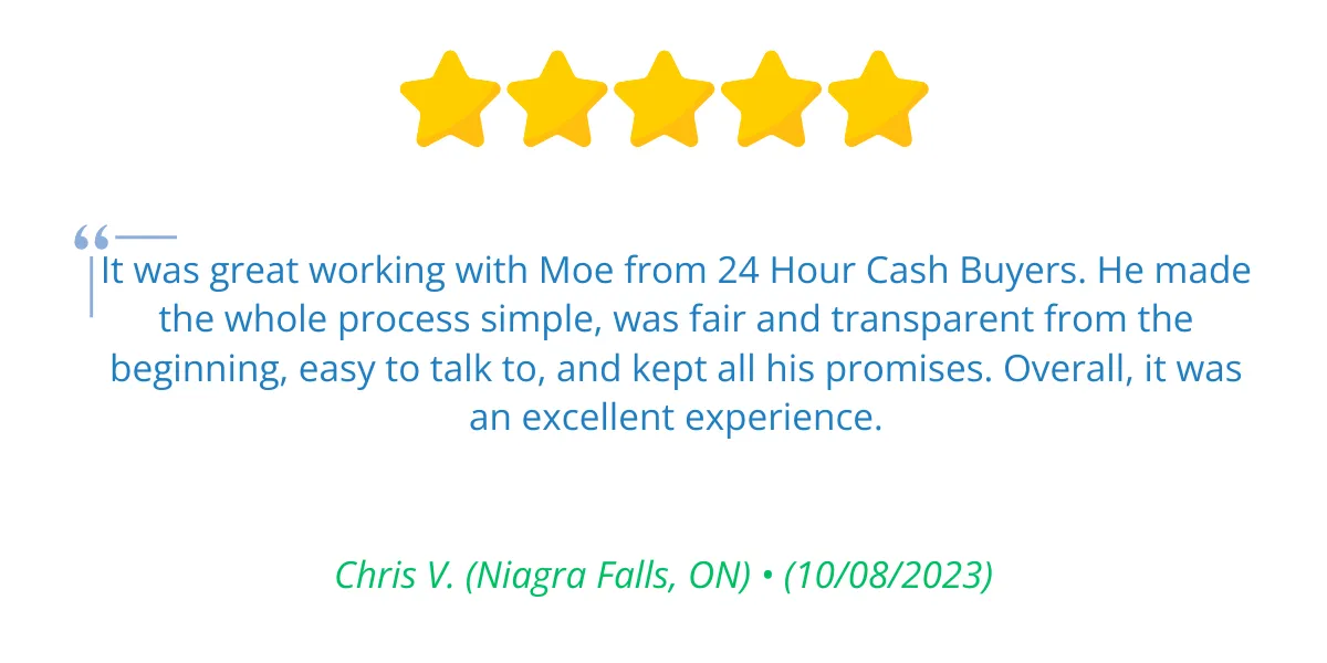 Absolutely! When it comes to purchasing properties for cash, we operate independently of banks, giving us the flexibility to align with your timelines. Once our offer is accepted, the closing process is straightforward, and you’ll receive the funds through your lawyer on the closing day. This ensures a seamless and efficient transaction, tailored to your needs and preferences. Explore how selling your home for cash with us can be a hassle-free and rewarding experience.